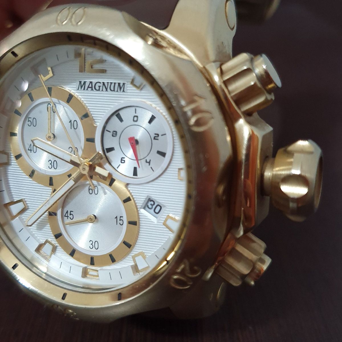 Relógio Masculino Magnum MA33755B Dourado Extra Grande Cronógrafo 100M (Detalhes) - YouTube