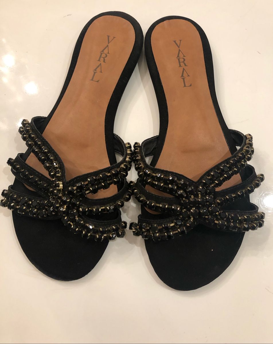 Rasteira Preta Strass | Rasteira Feminina Varal Usado 38186496 | enjoei